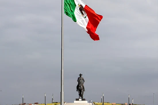 La efigie de hierro fundido del General Felipe Ángeles, quien le da identidad a este Aeropuerto, con una altura de 10 metros y 20 toneladas de peso.