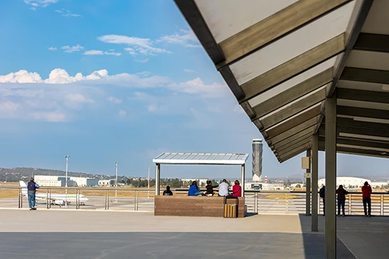 Un mirador donde se puede admirar la Torre de Control y operaciones aéreas de la Pista 4 izquierda.